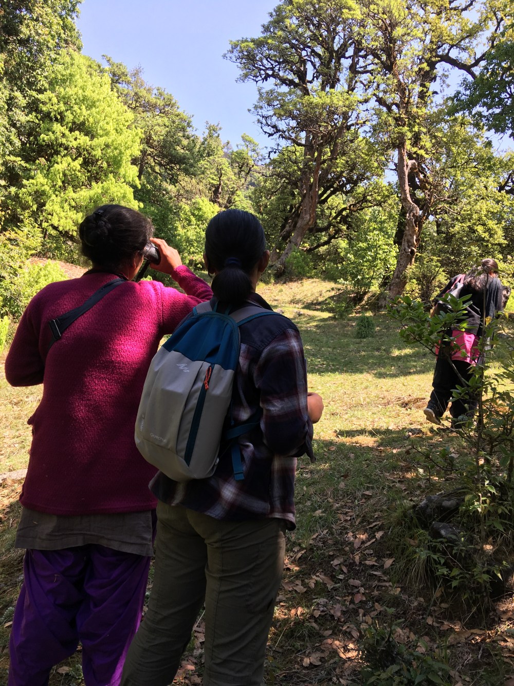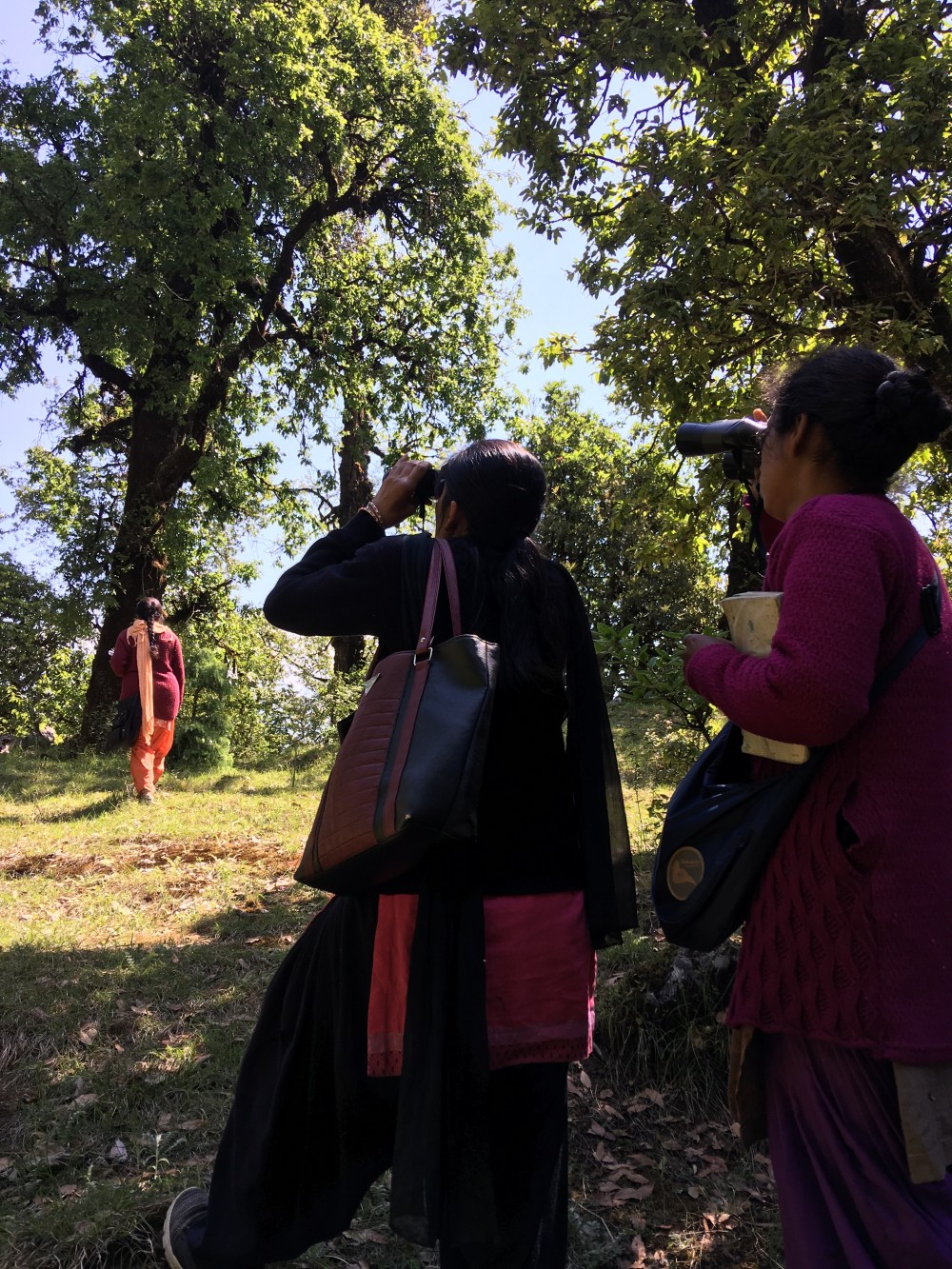 Off we went, a group of 3 women guides working with each other to listen to and identify names of birds and share that with enthusiasm and pride. They also had learnt the names of birds like laughingthrush, woodpecker, forktail without knowing the meaning. But that wasn’t a disadvantage to them, given their sincerity. They also knew these names in Hindi and Kumaoni.