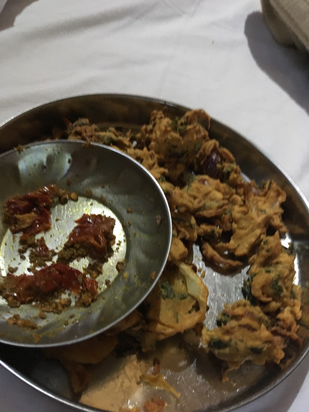 Absolutely divine pakoras make their way.