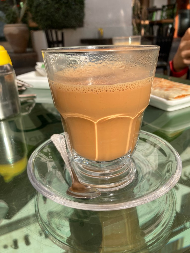 At the restaurant, the famed owner walked in saying hello to Afsha, and she said how all this came has still kept her grounded. The lady proceeded to instruct her staff, in grandmum tones – kindly but firm. It was joy to dive into ragag, a dosa of sorts with cheese and honey and for my poor suffering nose that was fully developing a cold, karak.