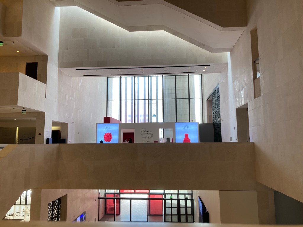 At the M7 Museum at Mshereib, the design district of Qatar, we went off to see the Forever Valentino museum. Women in twos and threes wafted in, walked through elements of the exhibition ooh-ing and aah-ing at gowns worn by Princess Grace of Monaco and Jackie O, and shoes too delicious for words and gorgeous minaudières inspired by the red coral reefs.