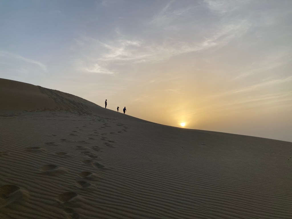 The sand dunes were almost an hour away and we got there in time for sunset. The climb wasn’t easy and I was using my gasping breathing technique mostly to stay alive. But like with any other climb, I got up there and it was gorgeous. The kids were a study in individuality. The teens weren’t amused at the sand dunes. The younger ones dug sand castles, wanted to catch butterflies and had philosophical observations about beetles. The parents had simultaneously individual styles of working with them and an umbrella style of fairness. It was a thing of beauty. We headed back to “How many minutes to home?” “How many now?”… “now how many?” Etc. I almost started an “Are we there yet?” But feared they might offload me on the desert and carry on, so kept quiet 😂