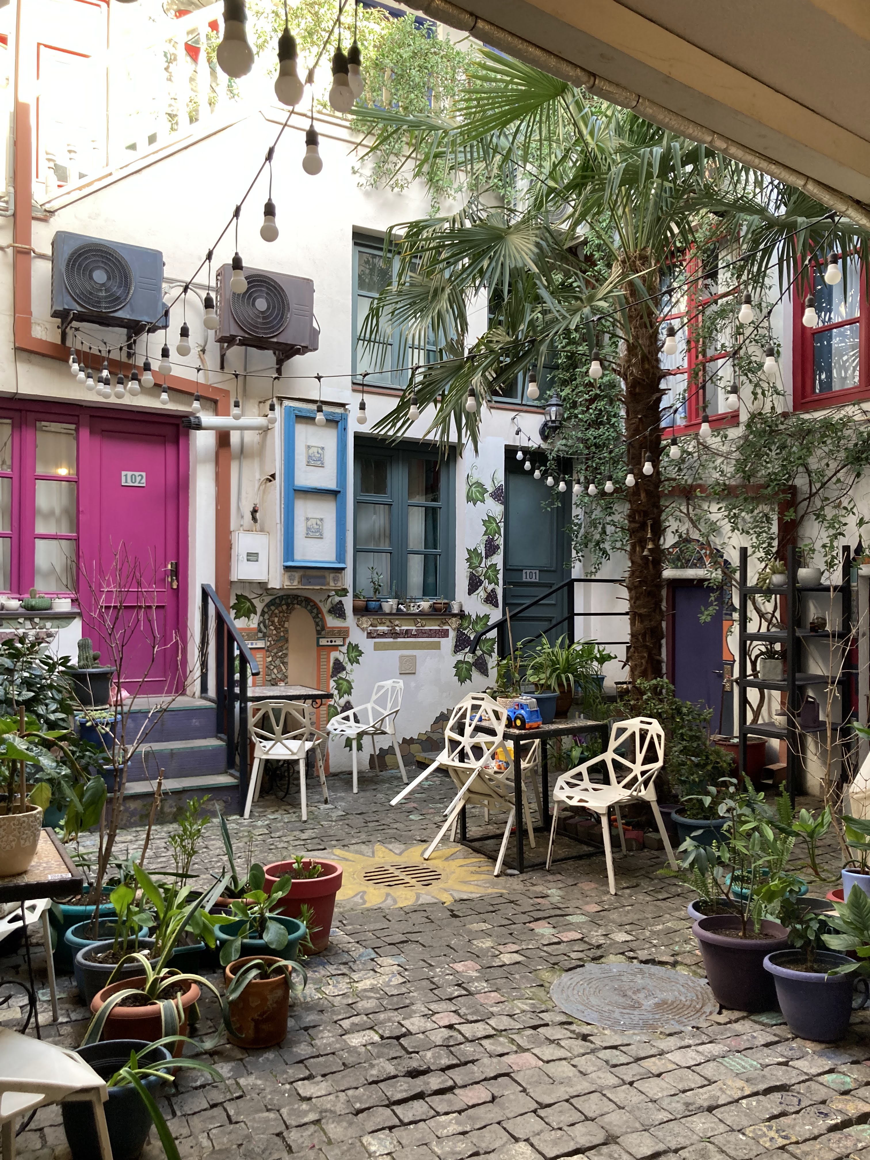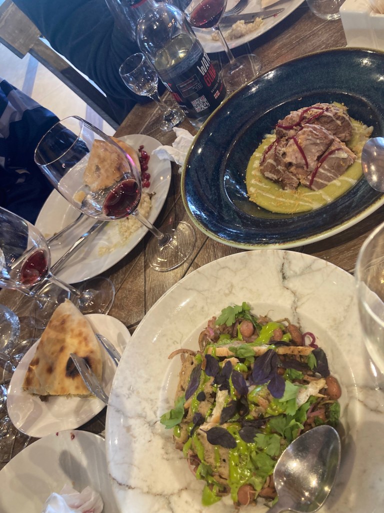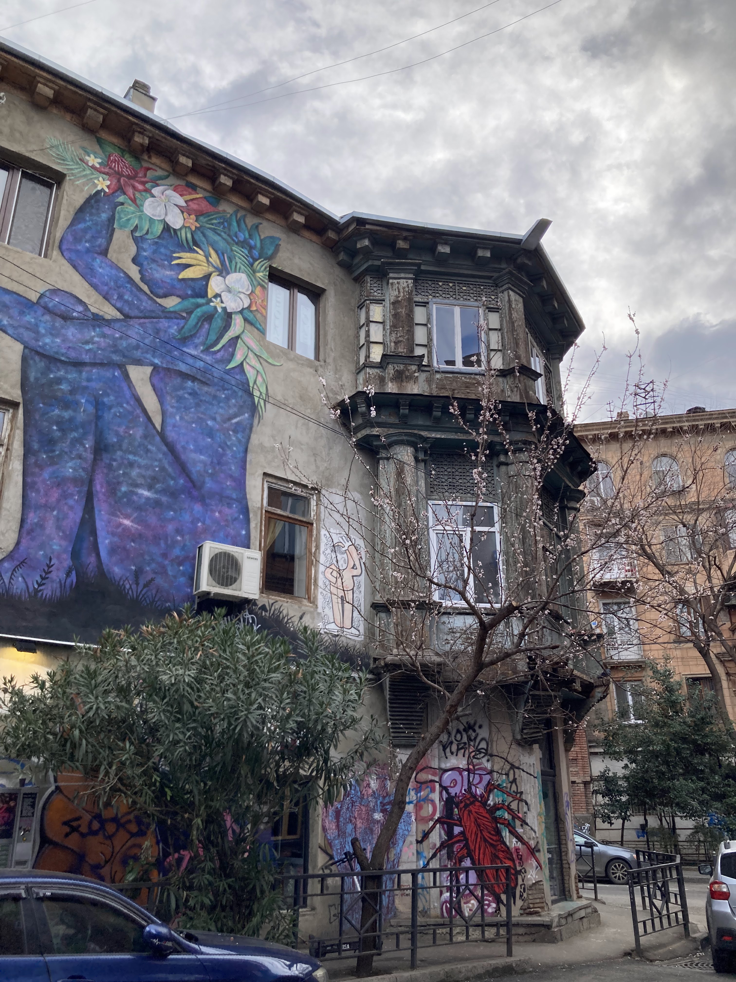 The stop on the way back to Fabrika at a private Museum of how folks in Tbilisi lived over the years, and a wine museum, was essential because it was in one of the intact caravanserais. I picked up a steaming hot Khachapuri from a bakery that had sprung up at a place that had been a bakery when the caravanserais were functioning as part of the Silk Route. Someone very grumpy gave me one khachapuri and waited for me to get lost 😄 I am so used to understanding the lives of retail workers, I took that to be a sign of it being a bad day for her and went on my way, wishing her well silently. The caravanserai with its glass roof lent itself to the imagination that akin to the stories of the spice route that I’ve heard in my culture, the silk route also would’ve housed the world in these massive old-time hotels. I imagined my forebears, of who knows what national / cultural heritage then, coming into touch with another world and expanding their world-views. Maybe making families as they go, like I tend to do – collect friends and make them into my own little families of choice.