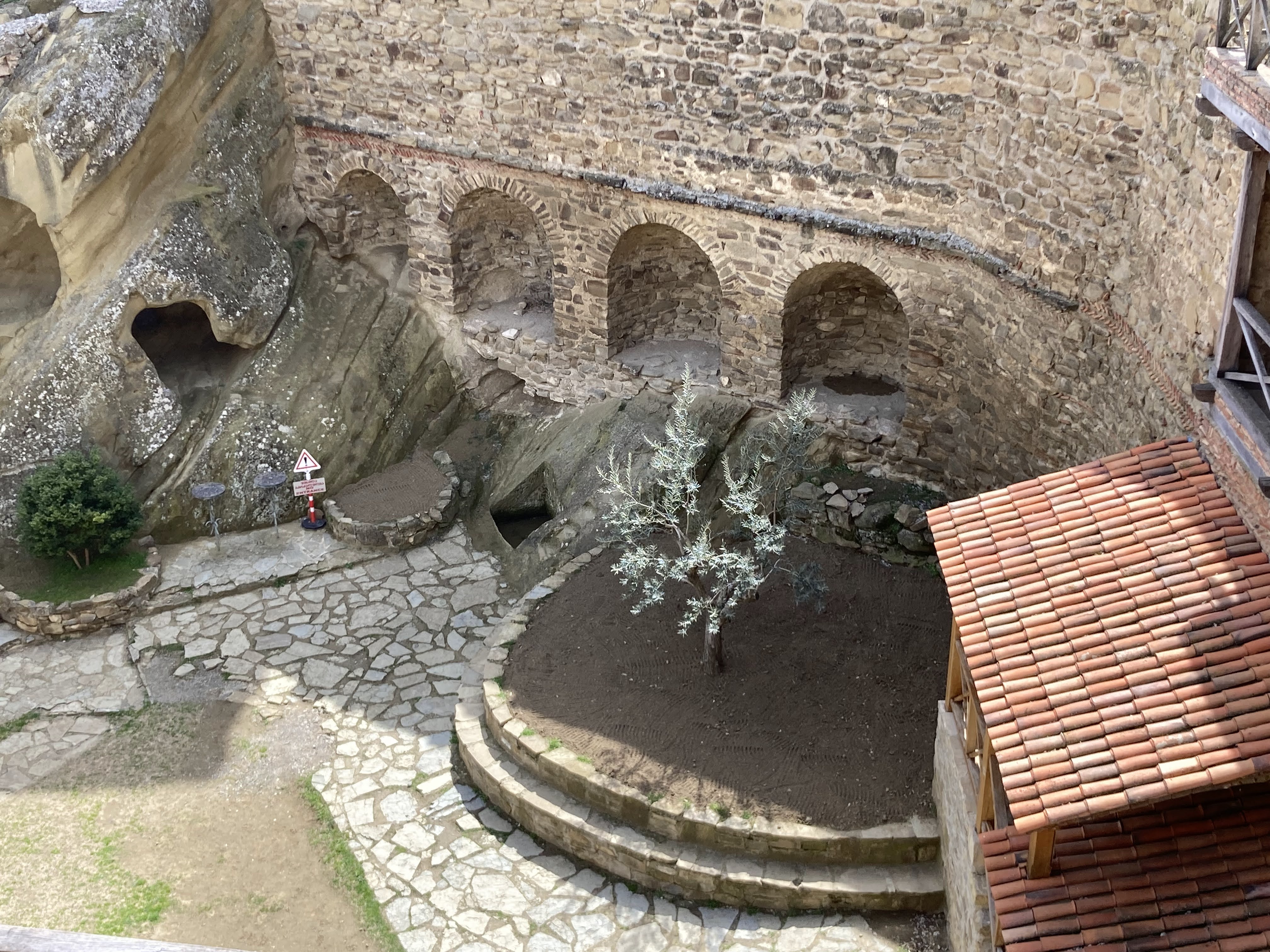 We were heading to Natlismtsemeli monastery when Ana pointed out a lone sheep nestled on the side of a hill, and said look, she’s just had a baby. And there was a kid, getting up on unsteady legs and falling down, and a collective aaaawwwww went up within our car. Seconds later, like in a movie scene, the shepherd appeared over the horizon. Ana explained that he is looking for the sheep, and the driver tooted the horn and pointed in the direction of the sheep, and he ambled off. A moment of pastoral perfection, if I’ve ever witnessed one! There I was, drinking in bucolic beauty and expanding my spirit.